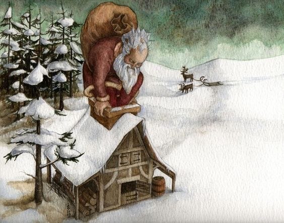 After a very long night of this, she returned home. She had been gone only an hour by the way you and I measure time, but that is hardly a good measure of her efforts which would feel to us closer to a lifetime. The next morning she was surprised to see a wrapped present under her Christmas tree, with her name on it. This was very odd, because she understood Christmas to be about giving, not getting, but then her human logic worked it out that with all of that giving there must be equal parts receiving.